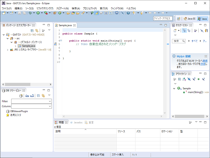 $ cd /c/tmp/eclipse_git_dir/Gitテスト/ $ git init Initialized empty Git repository in C:/tmp/eclipse_git_dir/Gitテスト/.git/